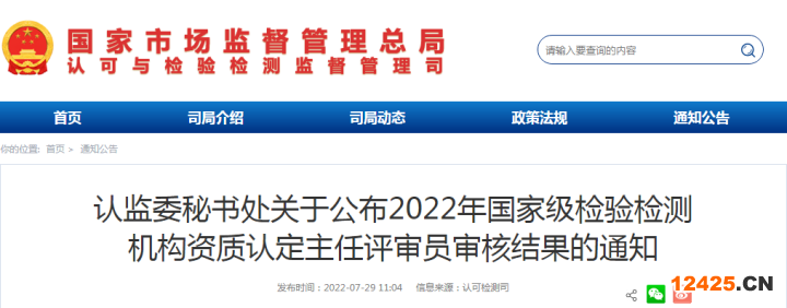 認監(jiān)委秘書處關(guān)于公布2022年國家級檢驗檢測機構(gòu)資質(zhì)認定主任評審員審核結(jié)果的通知
