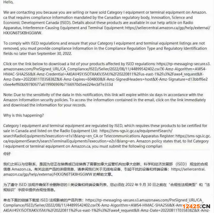 亞馬遜加拿大站,凡是在ISED認(rèn)證范圍內(nèi)的產(chǎn)品,如在9月30號(hào)前沒法提供ISED合規(guī)信息,則商品鏈接將會(huì)被下架。