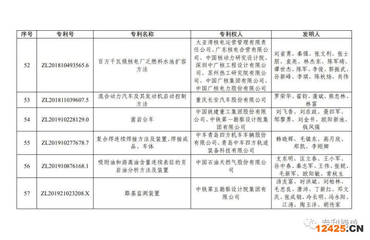 第23屆中國專利銀獎項目名單(60項)
