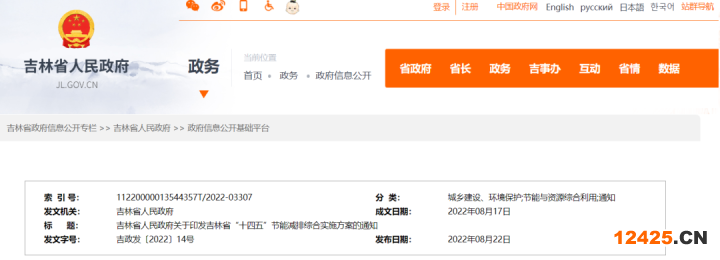 吉林省人民政府關(guān)于印發(fā)吉林省“十四五”節(jié)能減排綜合實(shí)施方案的通知