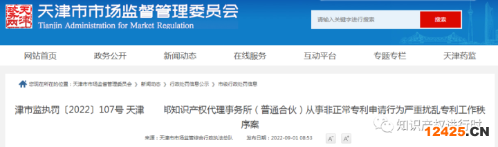 天津XXX知識產(chǎn)權(quán)代理事務(wù)所(普通合伙)從事非正常專利申請行為嚴重擾亂專利工作秩序案