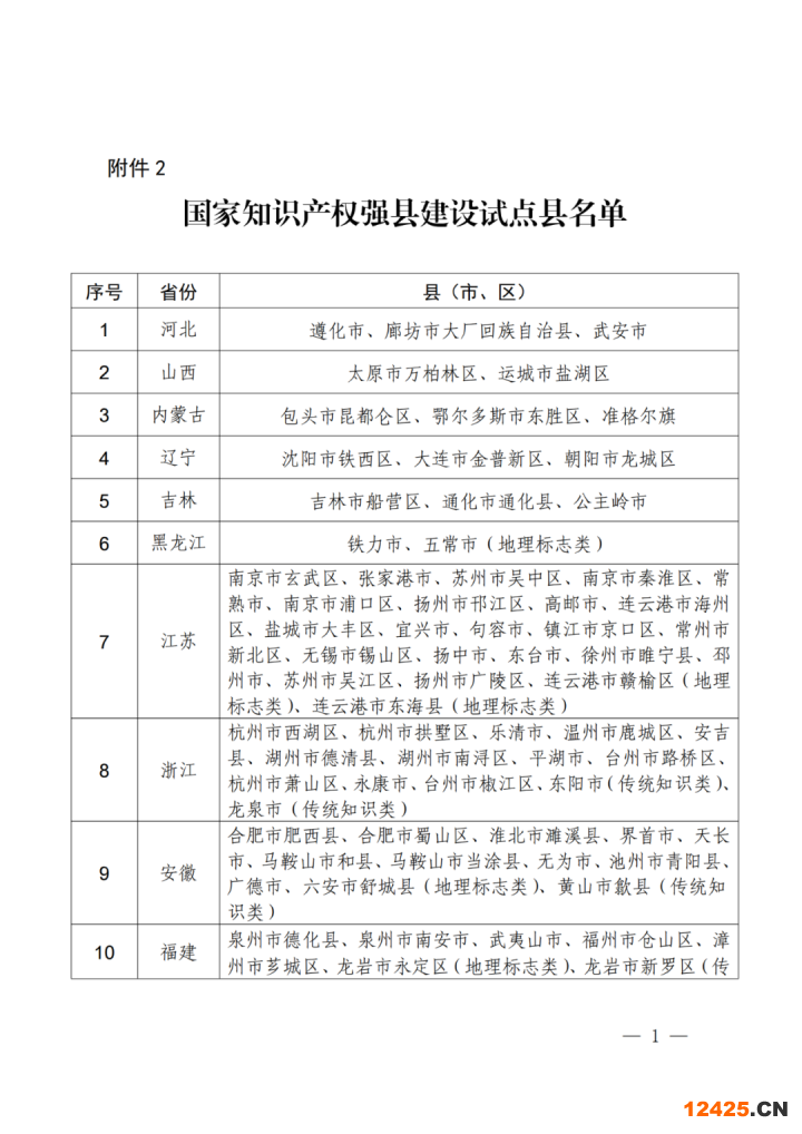 附件1:國家知識(shí)產(chǎn)權(quán)強(qiáng)縣建設(shè)示范縣名單