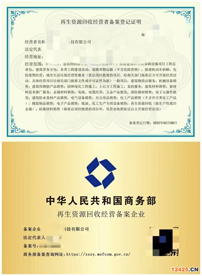 ⑤再生資源回收經(jīng)營(yíng)備案證明證書長(zhǎng)什么樣子?