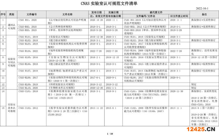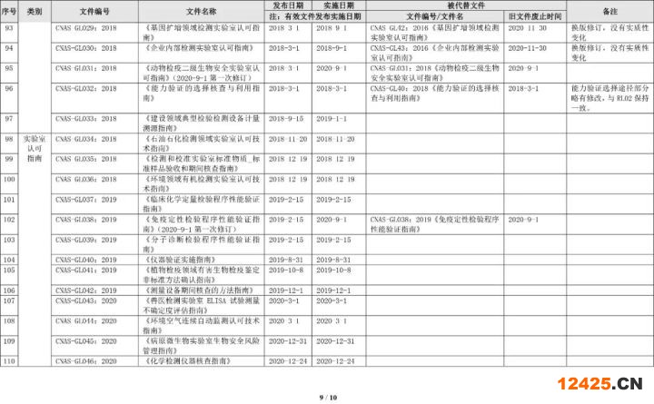 CNAS-實驗室認(rèn)可規(guī)范文件清單