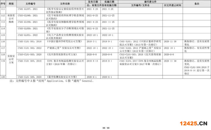 近日,中國合格評定國家認(rèn)可委員會發(fā)布最新CNAS實驗室認(rèn)可規(guī)范文件清單,共包含120個文件。