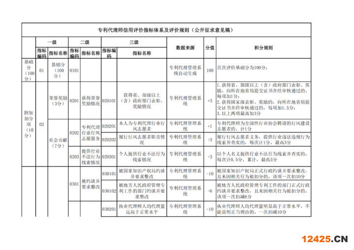 專利代理信用評(píng)價(jià)管理辦法(公開(kāi)征求意見(jiàn)稿)