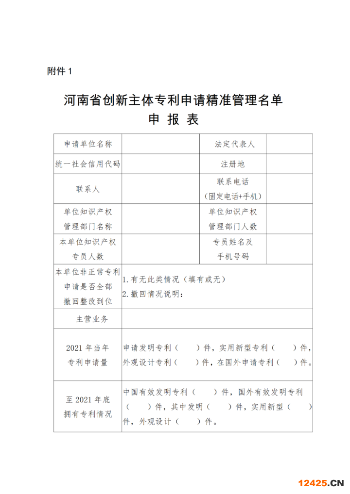 附件:1.河南省創(chuàng)新主體專利申請(qǐng)精準(zhǔn)管理名單申報(bào)表
