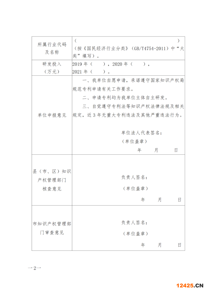 (一)各縣(市、區(qū))知識(shí)產(chǎn)權(quán)管理部門(mén)負(fù)責(zé)組織、通知和指導(dǎo)符合條件的創(chuàng)新主體進(jìn)行申報(bào);創(chuàng)新主體遵循自愿原則向所在地縣(市、區(qū))知識(shí)產(chǎn)權(quán)管理部門(mén)提出申請(qǐng),如實(shí)填寫(xiě)《河南省創(chuàng)新主體專利申請(qǐng)精準(zhǔn)管理名單申報(bào)表》(附件1)并提供營(yíng)業(yè)執(zhí)照、事業(yè)法人證書(shū)、社團(tuán)登記證及統(tǒng)一社會(huì)信用代碼證書(shū)復(fù)印件備查。