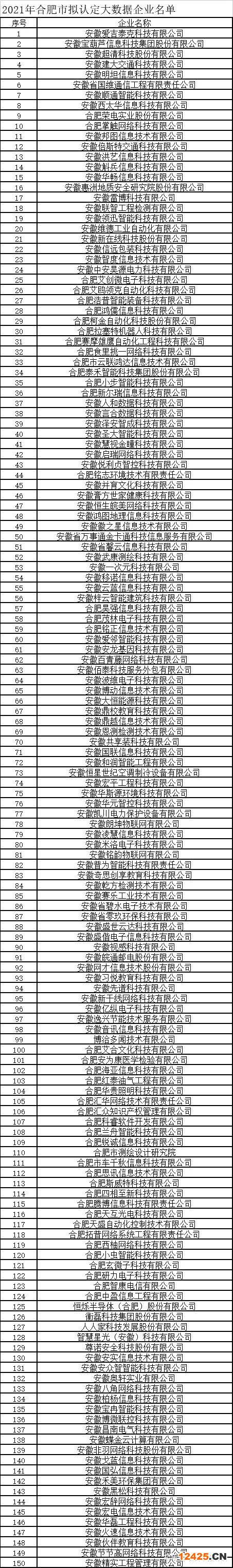 合肥市大數(shù)據(jù)企業(yè)公示名單(2021年度)