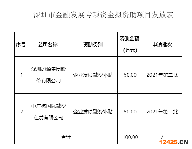 根據(jù)《關(guān)于強(qiáng)化中小微企業(yè)金融服務(wù)的若干措施》(深府規(guī)〔2018〕17號(hào))、《<關(guān)于強(qiáng)化中小微企業(yè)金融服務(wù)的若干措施>實(shí)施細(xì)則》(深金規(guī)〔2018〕7號(hào))相關(guān)規(guī)定,經(jīng)初審和復(fù)核等相關(guān)程序,現(xiàn)擬向深圳能源集團(tuán)股份有限公司等2家企業(yè)發(fā)放發(fā)債融資補(bǔ)貼(見(jiàn)附件)。對(duì)公示項(xiàng)目有異議的單位或個(gè)人,請(qǐng)?jiān)诠酒趦?nèi),以來(lái)電或來(lái)函方式反映情況,并提供真實(shí)姓名及聯(lián)系方式。以上項(xiàng)目公示期為10月14日至10月20日。