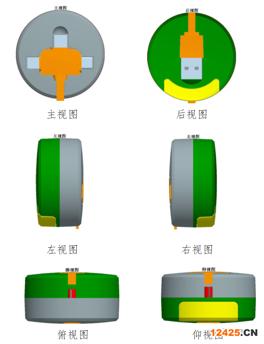 涉案專利包括主視圖、后視圖、左視圖、右視圖、俯視圖、仰視圖共六幅視圖。