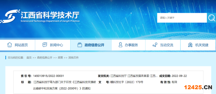 江西省科技廳等九部門關(guān)于印發(fā)《江西省科技支撐碳達(dá)峰碳中和實(shí)施方案(2022-2030年)》的通知