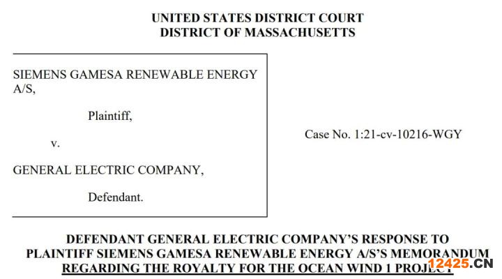 “目前,波士頓馬薩諸塞聯(lián)邦地區(qū)法院法官尚未對(duì)西門子歌美颯所要求的9萬(wàn)美元的Ocean Wind 1項(xiàng)目特許權(quán)使用費(fèi)作出裁決。”