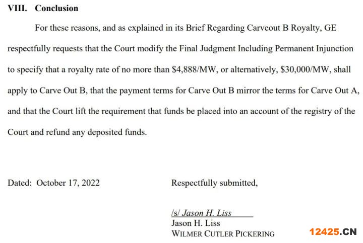 繼日前美國(guó)波士頓聯(lián)邦法官對(duì)GE作出的“禁止GE在美國(guó)制造、使用、出售、進(jìn)口或安裝Haliade-X海上風(fēng)機(jī)”的裁決,西門子歌美颯不滿足于法院就Vinard Wind 1項(xiàng)目對(duì)GE判罰的每兆瓦3萬(wàn)美元結(jié)果,目前正在向法院就Ocean Wind 1相關(guān)項(xiàng)目提出向GE索要每兆瓦不低于9萬(wàn)美元特許權(quán)使用費(fèi)的請(qǐng)求。