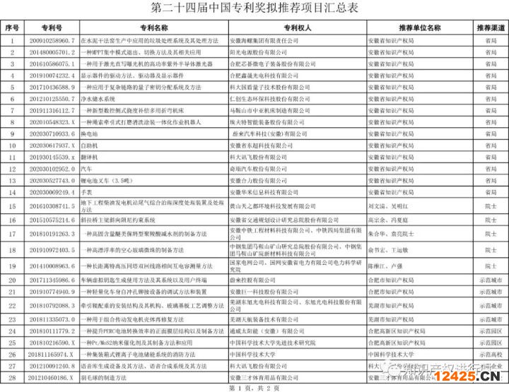 關(guān)于擬推薦第二十四屆中國(guó)專利獎(jiǎng)的公示公告