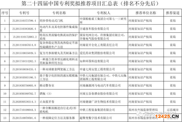 28河南省知識(shí)產(chǎn)權(quán)局第二十四屆中國(guó)專利獎(jiǎng)擬推薦項(xiàng)目公示