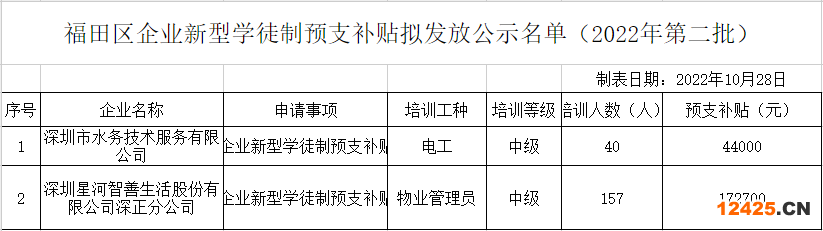 福田區(qū)企業(yè)新型學(xué)徒制部分企業(yè)預(yù)支補(bǔ)貼公示(2022年第二批)