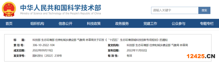 科技部 生態(tài)環(huán)境部 住房和城鄉(xiāng)建設(shè)部 氣象局 林草局關(guān)于印發(fā)《“十四五”生態(tài)環(huán)境領(lǐng)域科技創(chuàng)新專項(xiàng)規(guī)劃》的通知