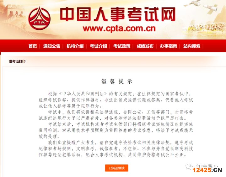 中國人事考試網(wǎng):http://www.cpta.com.cn/