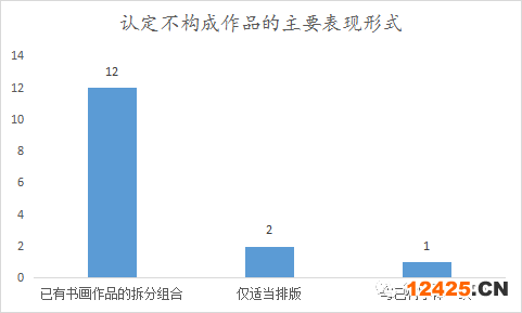 獨(dú)創(chuàng)性是法院認(rèn)定構(gòu)成作品的主要因素。從創(chuàng)作程度上,15件不構(gòu)成作品的糾紛中,13件裁判文書(shū)中認(rèn)為涉案字體“未達(dá)到最低限度的創(chuàng)造性”,2件認(rèn)為涉案字體“創(chuàng)作程度較低”。