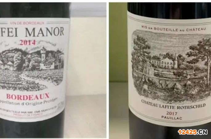 在外包裝上,“拉菲莊園”標(biāo)識(shí)了文字“ LAFEI MANOR”。其中,“LAFEI”是“拉菲”的拼音,且與“LAFITE”字形相近,而“MANOR”意為“莊園”。