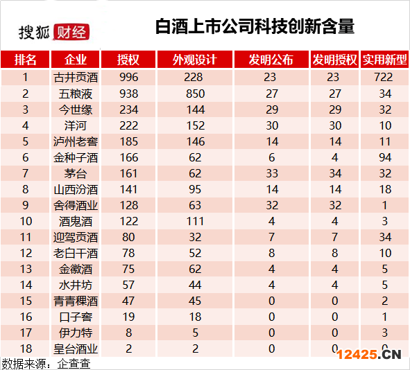 (圖片來源:搜狐財經(jīng)《酒企科技含量在哪:古井貢申請996件專利,含茶杯架、噴壺;董事長發(fā)明撲克牌》[2])