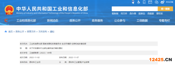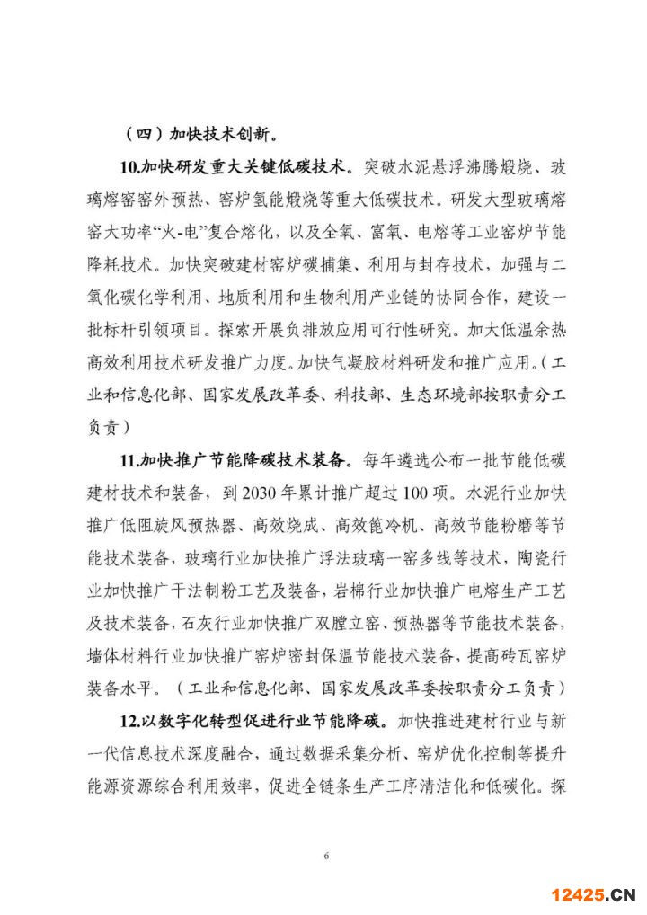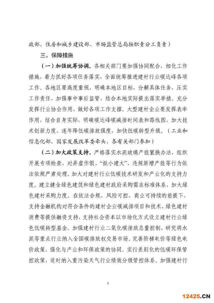 四部門關(guān)于印發(fā)建材行業(yè)碳達(dá)峰實(shí)施方案的通知