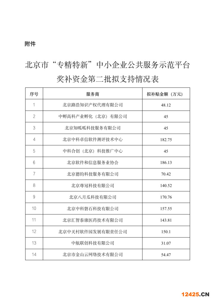 附件:北京市“專精特新”中小企業(yè)公共服務示范平臺獎補資金第二批擬支持情況表