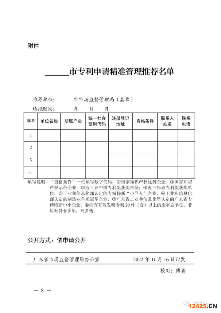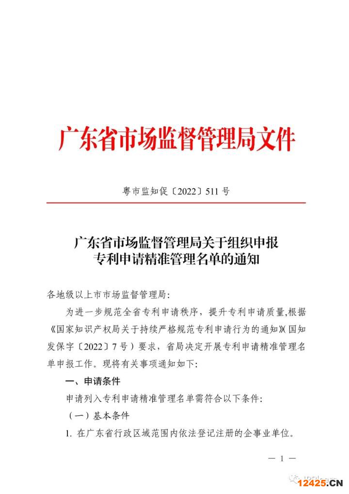 近日,廣東省市場(chǎng)監(jiān)督管理局關(guān)于組織申報(bào)專利申請(qǐng)精準(zhǔn)管理名單的通知: