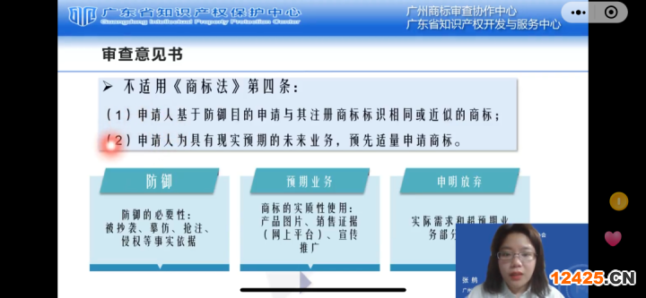緊接著,就開始首日的培訓(xùn)課程,廣州商標(biāo)審查協(xié)作中心首審一部部長張鸼重點(diǎn)從“商標(biāo)注冊申請?jiān)谙茸缘膶彶?rdquo;“商標(biāo)注冊申請不予注冊情形”等方面做了精彩分享,廣州商標(biāo)審查協(xié)作中心審查員李秋燕就“集體商標(biāo)及證明商標(biāo)申請審查”內(nèi)容進(jìn)行了精彩分享。
