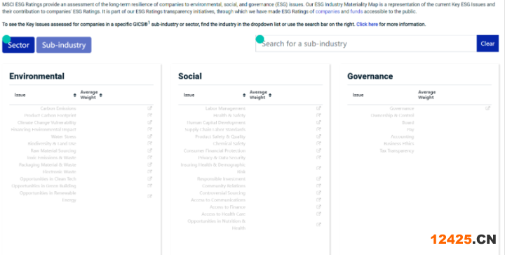 MSCI ESG評(píng)價(jià)體系為各行業(yè)(sector)選擇的關(guān)鍵議題