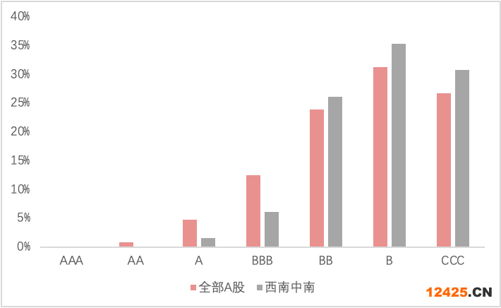 全部A股與西南中南A股企業(yè)MSCI評(píng)級(jí)對(duì)比