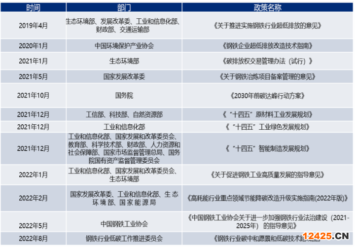 圖1 中國鋼鐵行業(yè)政策匯總(2019-2022年)