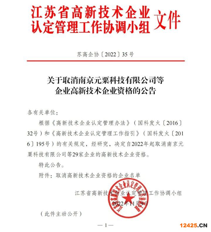 105家企業(yè)被取消企業(yè)高新技術(shù)資格!