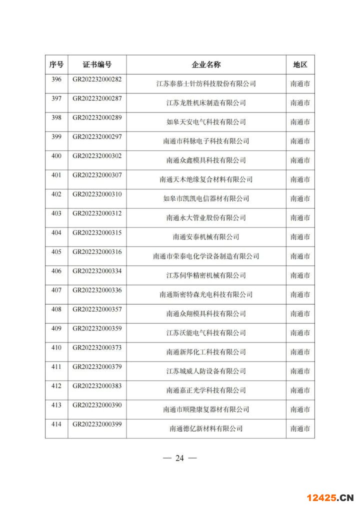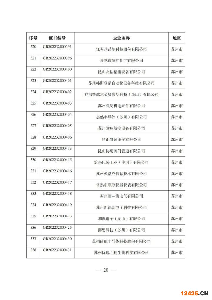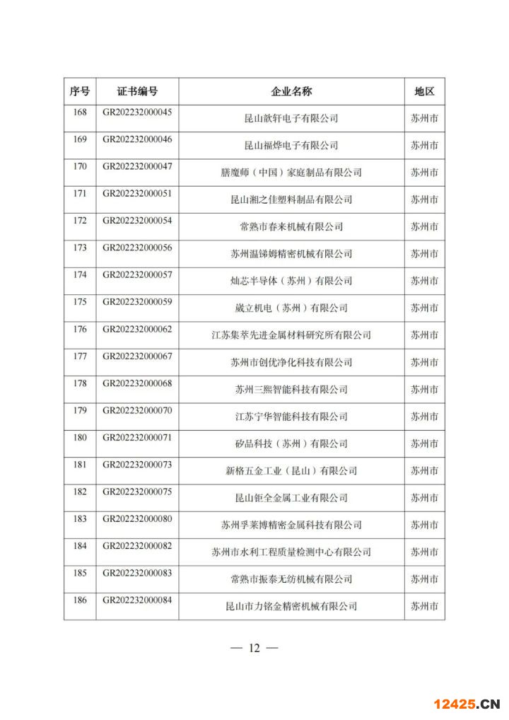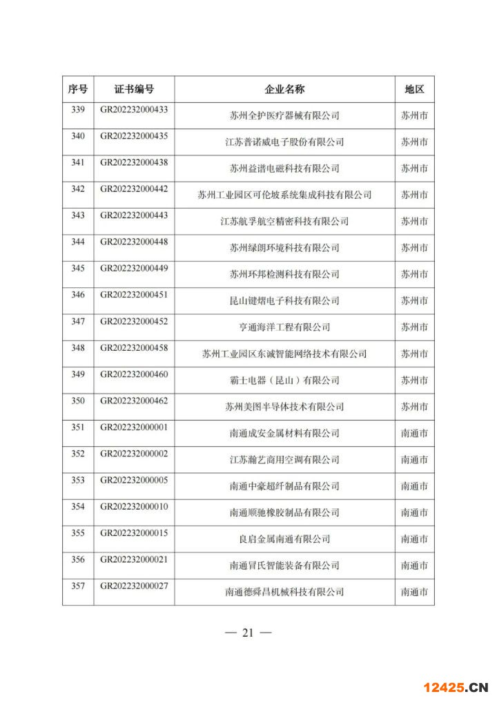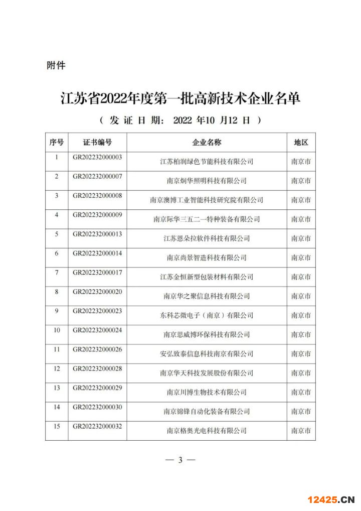 關(guān)于公布江蘇省2022年度第一批高新技術(shù)企業(yè)名單的通知