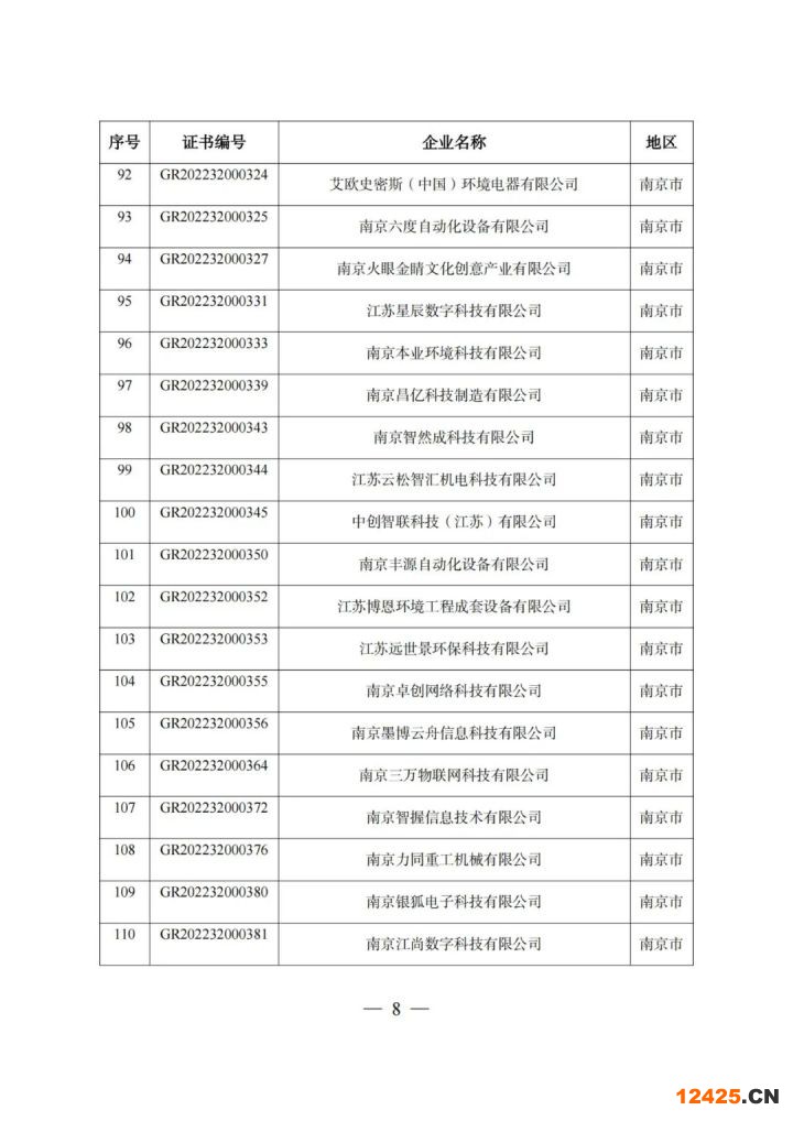 附件:江蘇省2022年度第一批高新技術(shù)企業(yè)名單