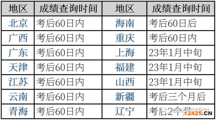 我們先看看各地在報(bào)名通知中公布的成績查詢時(shí)間以及近幾年成績公布的時(shí)間,一起來看看!