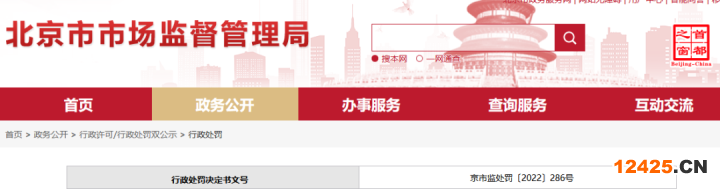 行政處罰決定書文號:京市監(jiān)處罰〔2022〕286號