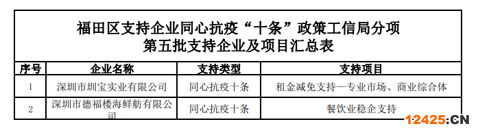 根據(jù)《深圳市福田區(qū)支持企業(yè)同心抗疫“十條”政策》的規(guī)定,經(jīng)審議并公示無異議,決定對(duì)以下企業(yè)及項(xiàng)目(詳見附件)予以支持。