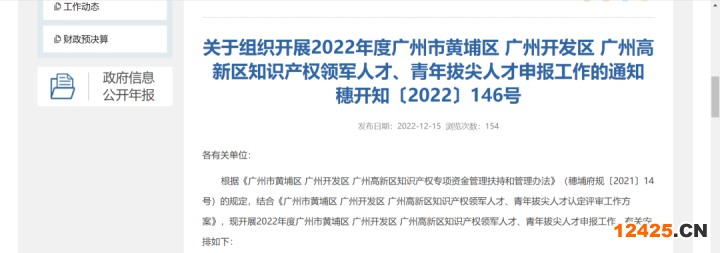 關(guān)于組織開展2022年度廣州市黃埔區(qū) 廣州開發(fā)區(qū) 廣州高新區(qū)知識產(chǎn)權(quán)領(lǐng)軍人才、青年拔尖人才申報工作的通知 穗開知〔2022〕146號