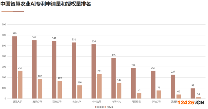 圖7 中國智慧農(nóng)業(yè)AI專利申請量和授權(quán)量排名