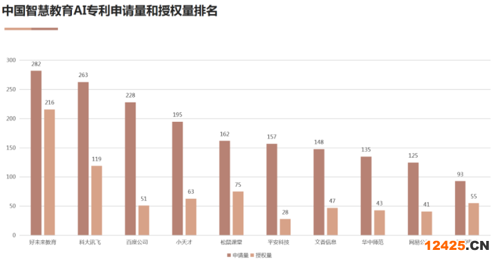 圖6 中國智慧教育AI專利申請量和授權(quán)量排名
