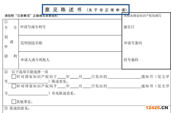 【通知全文】國知局2023年1月啟用“非正常專利申請”意見陳述書!