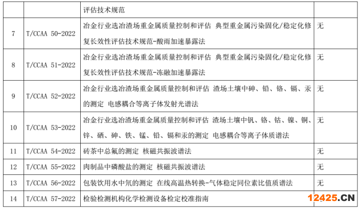 中國認(rèn)證認(rèn)可協(xié)會關(guān)于發(fā)布《冶金行業(yè)選冶渣場重金屬質(zhì)量控制和評估 修復(fù)土壤安全利用技術(shù)規(guī)范》 等 14 項(xiàng)團(tuán)體標(biāo)準(zhǔn)的公告