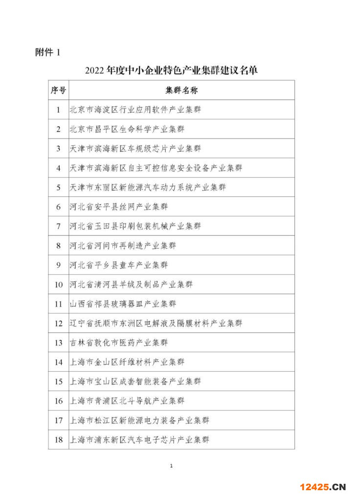 工信部:2022年度中小企業(yè)特色產(chǎn)業(yè)集群公示名單