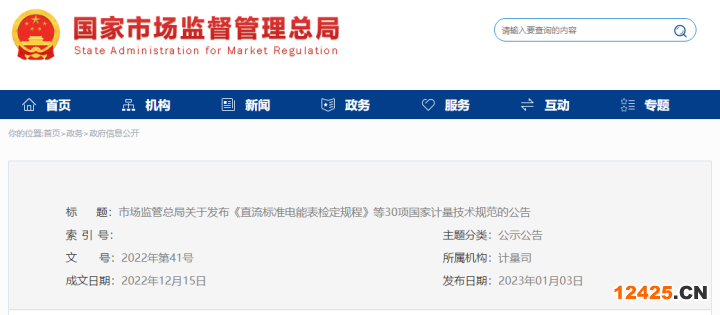 市場監(jiān)管總局關(guān)于發(fā)布《直流標(biāo)準(zhǔn)電能表檢定規(guī)程》等30項(xiàng)國家計(jì)量技術(shù)規(guī)范的公告