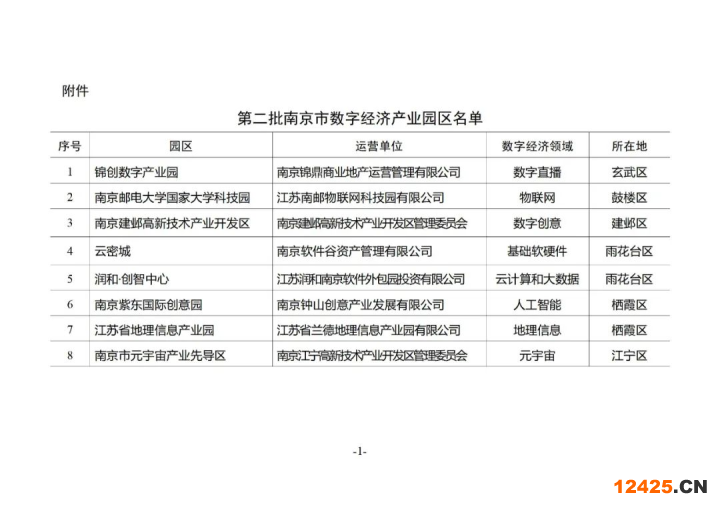 關(guān)于公布第二批南京市數(shù)字經(jīng)濟(jì)產(chǎn)業(yè)園區(qū)的通知