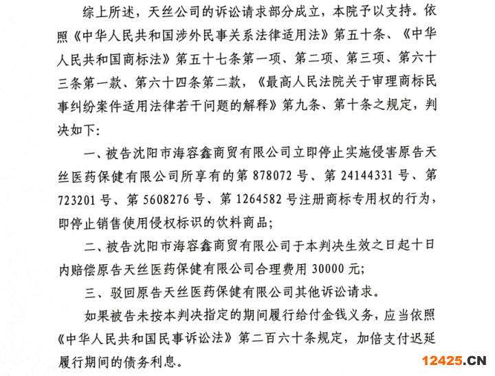 2023年1月3日,天絲醫(yī)藥保健有限公司(以下簡稱“天絲集團”)收到江西省南昌市中級人民法院就天絲醫(yī)藥保健有限公司針對南昌市龍泉食品有限公司、旺中旺百貨有限公司銷售侵權(quán)“紅牛維生素功能飲料”商品構(gòu)成商標侵權(quán)案【(2021)贛01民初622號】于2022年12月12日作出的一審判決,判決指出二被告構(gòu)成商標侵權(quán),需立即停止銷售并賠償天絲公司合理費用。