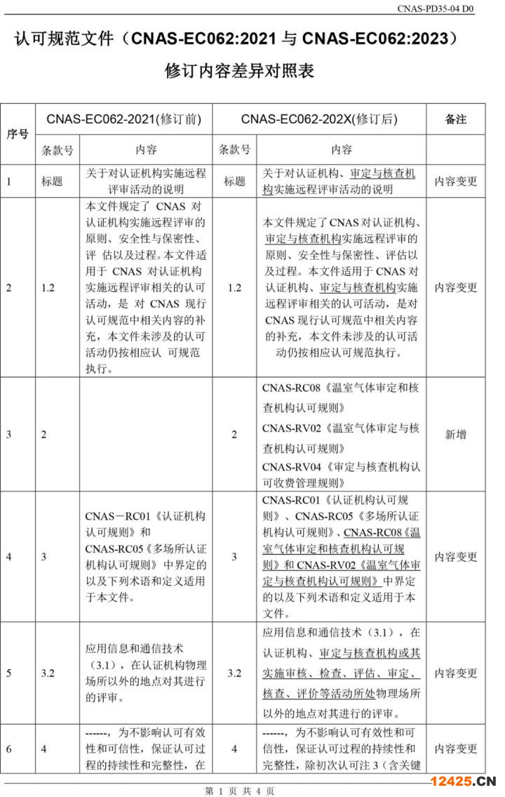 認(rèn)可規(guī)范文件(CNAS-EC062:2021與CNAS-EC062:202X)修訂內(nèi)容差異對照表