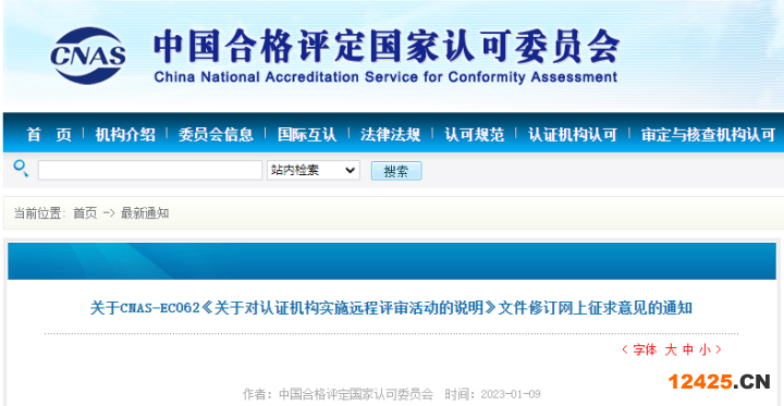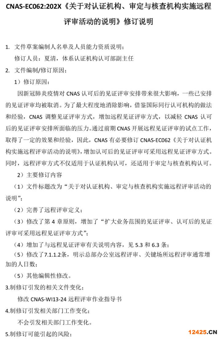 關(guān)于CNAS-EC062《關(guān)于對認(rèn)證機構(gòu)實施遠(yuǎn)程評審活動的說明》文件修訂網(wǎng)上征求意見的通知